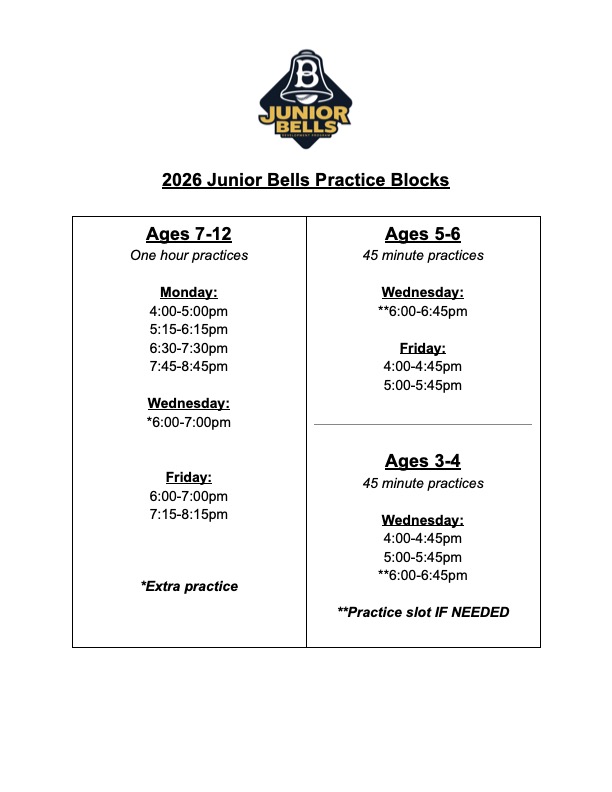 - Practice dates and times are subject to change depending on registration and field availability.